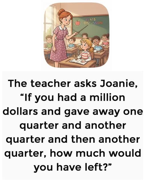 The teacher asks Joanie,“If you had a million dollars and gave away one quarter and another quarter and then another