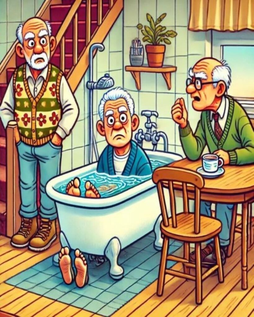 One night the 96-year-old draws a bath, puts his foot in, and pauses.He yells down the stairs, “Was I getting