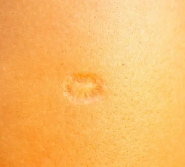 It wasn’t just a small mark; it had a peculiar formation. Around a slightly larger central indentation was a ring of tiny, evenly spaced indentations, almost as if someone had deliberately etched a pattern into her skin.
