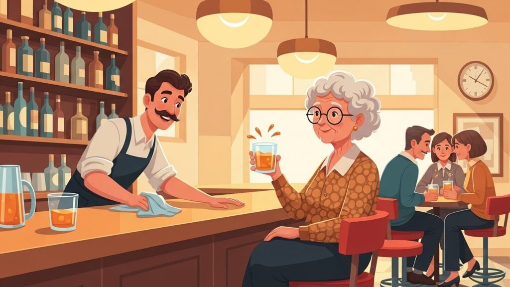 An elegant elderly lady strolled into the bar aboard a luxury cruise ship and settled comfortably onto a stool. With a gentle smile, she said to the bartender,