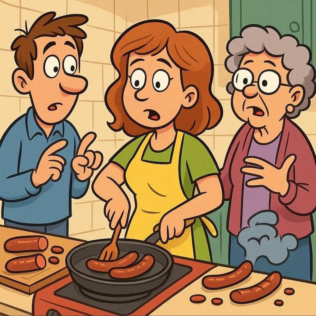 The elderly woman looked surprised and replied, “You’re still doing that? I only did it because my pan was too small to fit the whole sausage!”