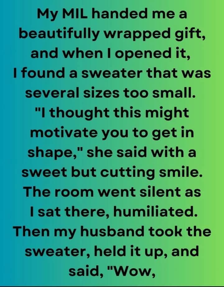 My MIL handed me a beautifully wrapped gift, and when I opened it, I found a sweater that was several