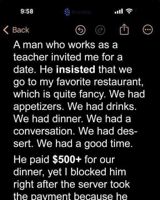 A woman blocked a man after their first date didn’t go as planned, feeling he crossed boundaries and tested her