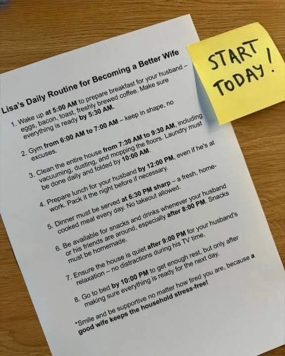 I was stunned when my husband, Jake, handed me a schedule to help me “become a better wife.” But instead