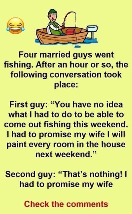 Four married men chose to go fishing together one day. As they threw their lines into the water, they talked