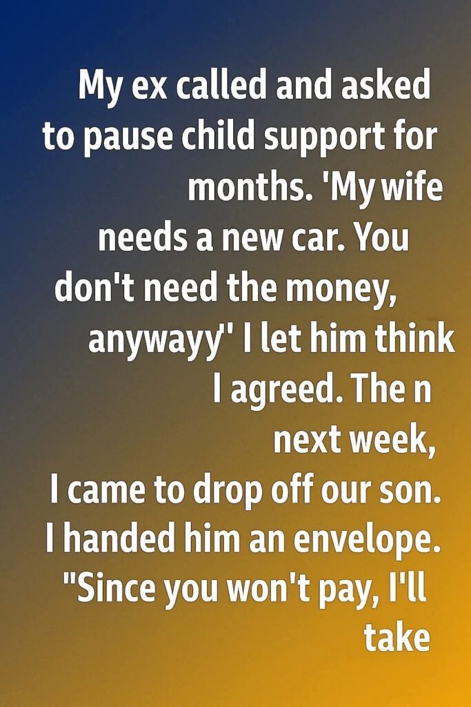 My ex called and asked to pause child support for months. “My wife needs a new car. You don’t need
