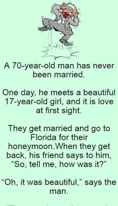 One day, he meets a beautiful 17-year-old girl, and it is love at first sight. They get married and go