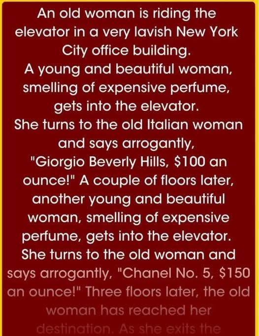 An old woman is riding the elevator in a very lavish New York City office building. A young and beautiful […]