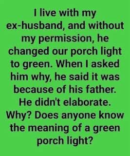 The Meaning Behind Green Porch Lights By Laugh With Mommy I live with my ex-husband, which has its share of