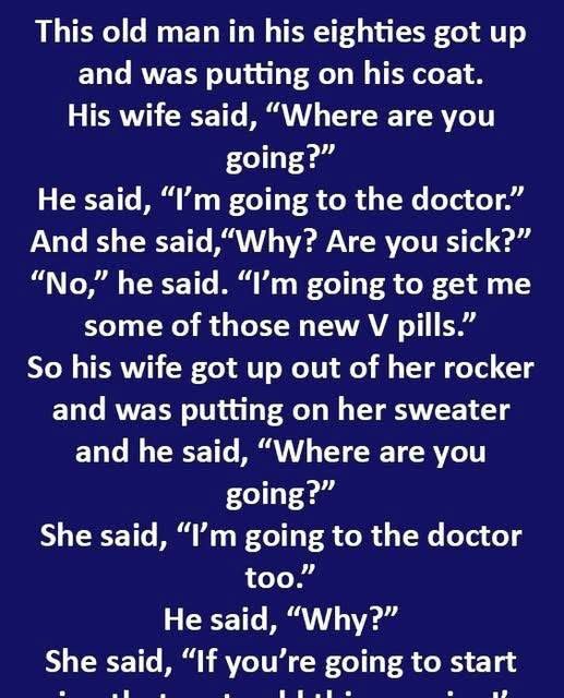 This old man in his eighties got up and was putting on his coat. His wife said, “Where are you
