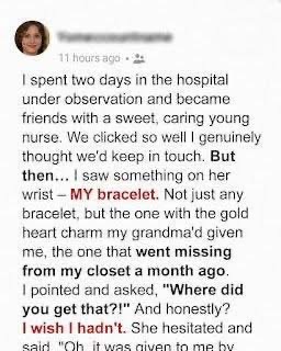 The moment my eyes landed on the delicate gold bracelet wrapped around Nurse Stephanie’s wrist, my breath caught. My grandmother’s