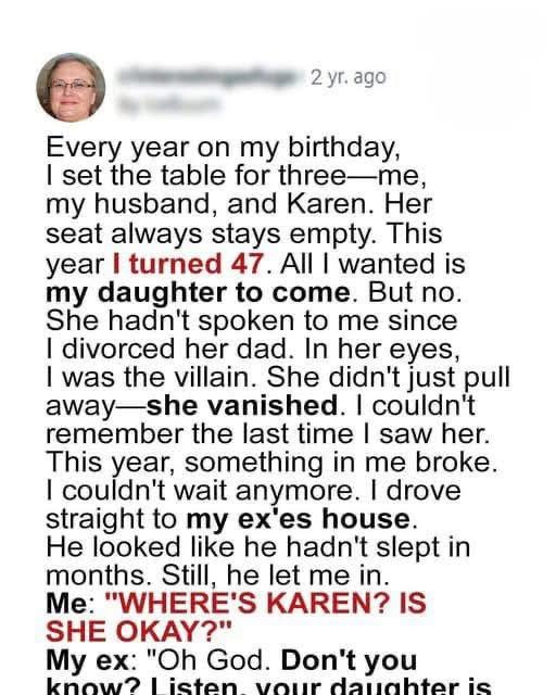On my forty-seventh birthday, I set the table for three—just as I had every year since my daughter, Karen, stopped