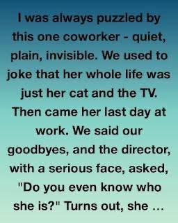 I used to be puzzled by one particular coworker. She was quiet, plain, almost invisible. The kind of person you