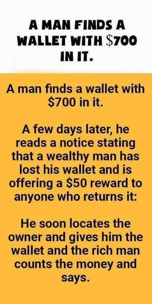 A man finds a wallet with $700 inside. A few days later, he sees a notice from a rich man who lost