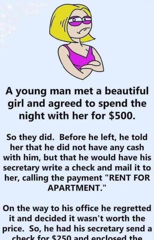 A young married man was in a bad spot because he had decided to pay a beautiful woman $500 to