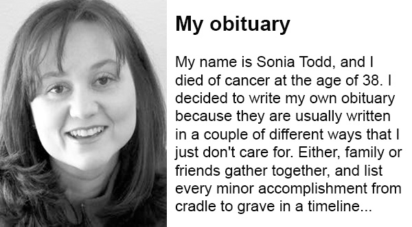Sonia Todd of Moscow, Idaho, died of cancer at the young age of 38. But knowing the end was near,