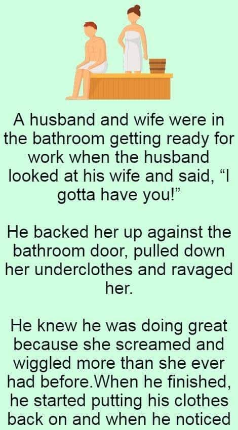 A husband and wife were in the bathroom getting ready for work when the husband looked at his wife and
