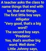 In a classroom filled with eager young minds, a teacher decided to spark their creativity with an engaging word game. The challenge was to come up with words that end with “tor” and have an insatiable appetite for consuming things. The students excitedly raised their hands, ready to participate.