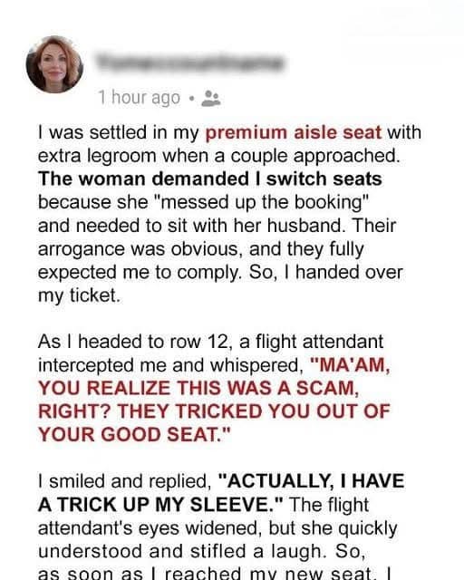 I never thought I’d be cheated out of my first-class seat on a plane, but that’s what happened. I was ripped off by a sneaky couple who had no idea who they were dealing with. They learnt a valuable lesson from the one I chose to teach them.