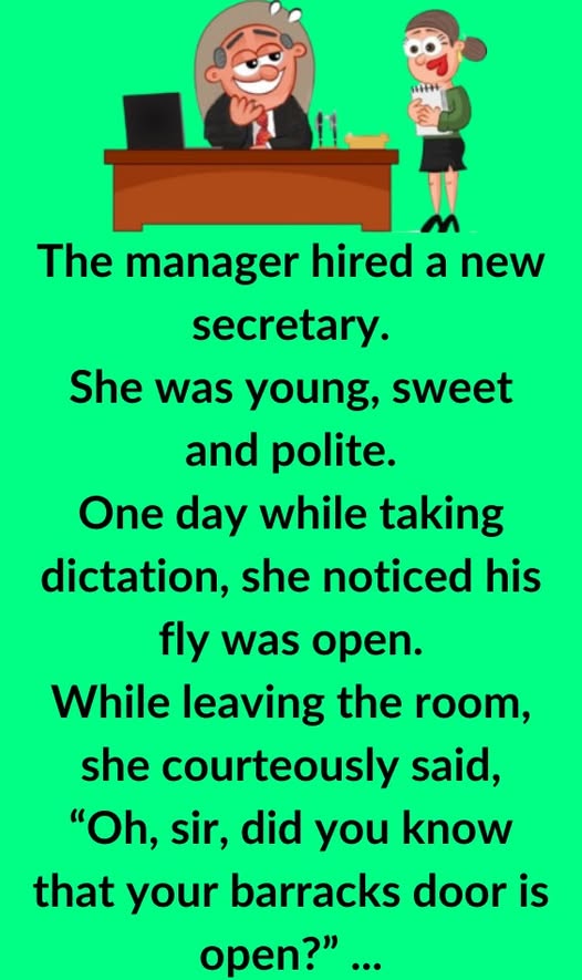 The manager hired a new secretary.She was young, sweet and polite. One day while taking dictation, she noticed his fly