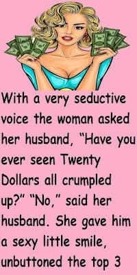 With a very seductive voice the woman asked her husband, “Have you ever seen Twenty Dollars all crumpled up?” “No,”