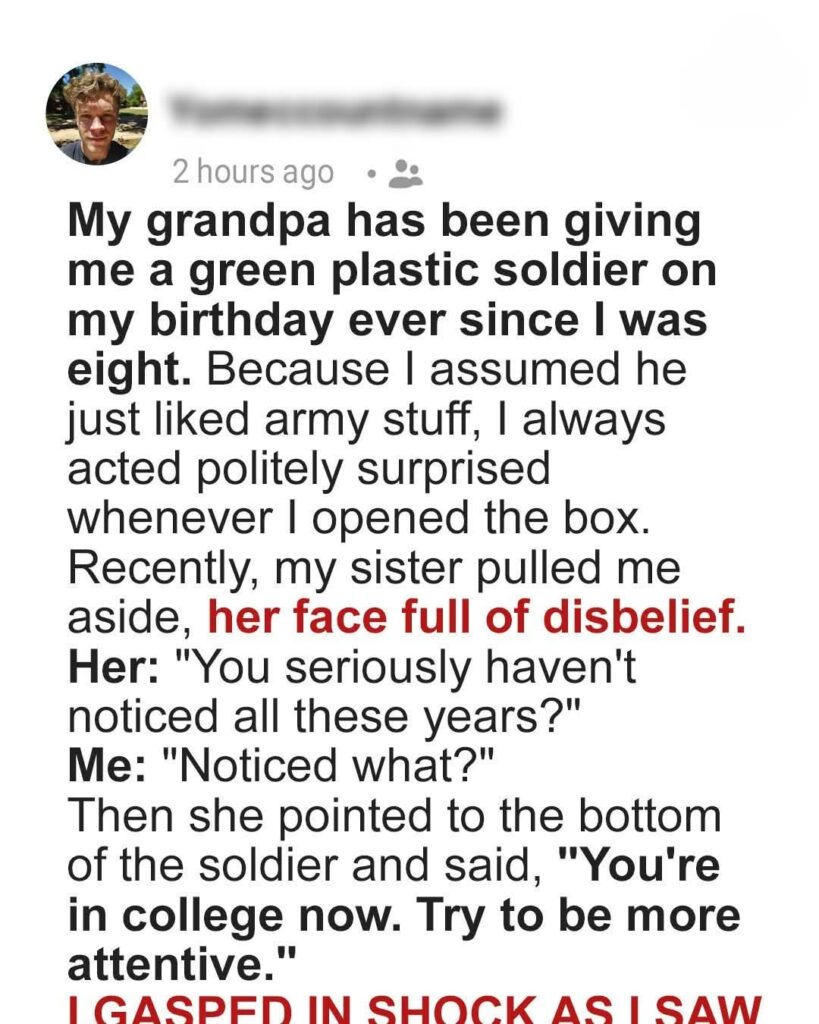 I never questioned the strange little ritual. Every year on my birthday, my grandfather would hand me a single green