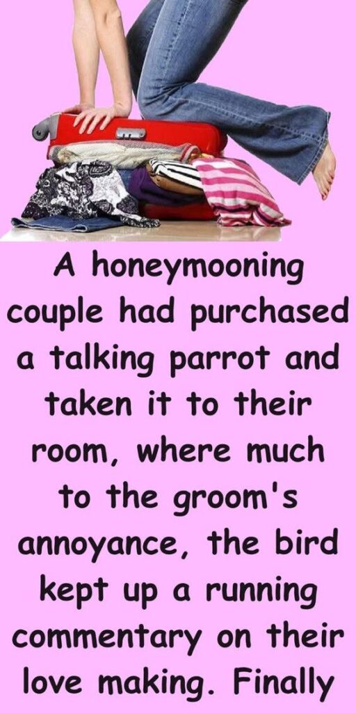A honeymooning couple had purchased a talking parrot and taken it to their room, where much to the groom’s annoyance,