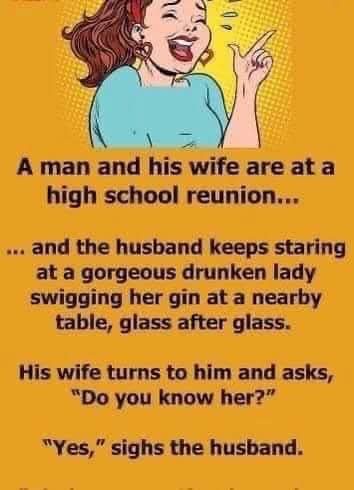 A married couple were sitting at a table at the wife’s high school reunion as an incredibly drunk man slumped