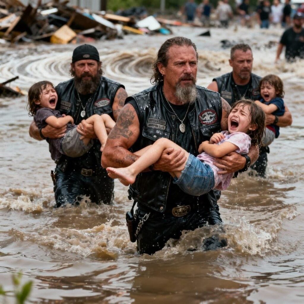 Bikers dove into raging floodwater to save 23 kindergarteners while their teacher stood frozen on the roof screaming they were