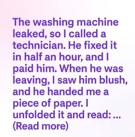 The washing machine leaked, so I called a technician. He fixed it in half an hour, and I paid him.