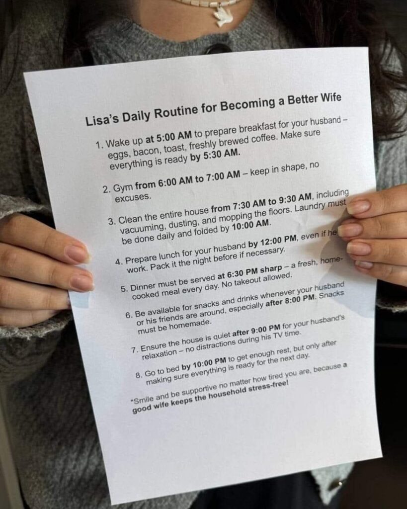 I was stunned when my husband, Jake, handed me a schedule to help me “become a better wife.” But instead