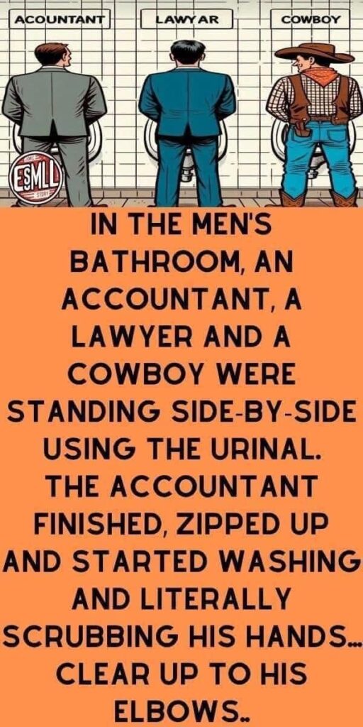 In the men’s bathroom, an accountant, a lawyer and a cowboy were standing side-by-side using the urinal.