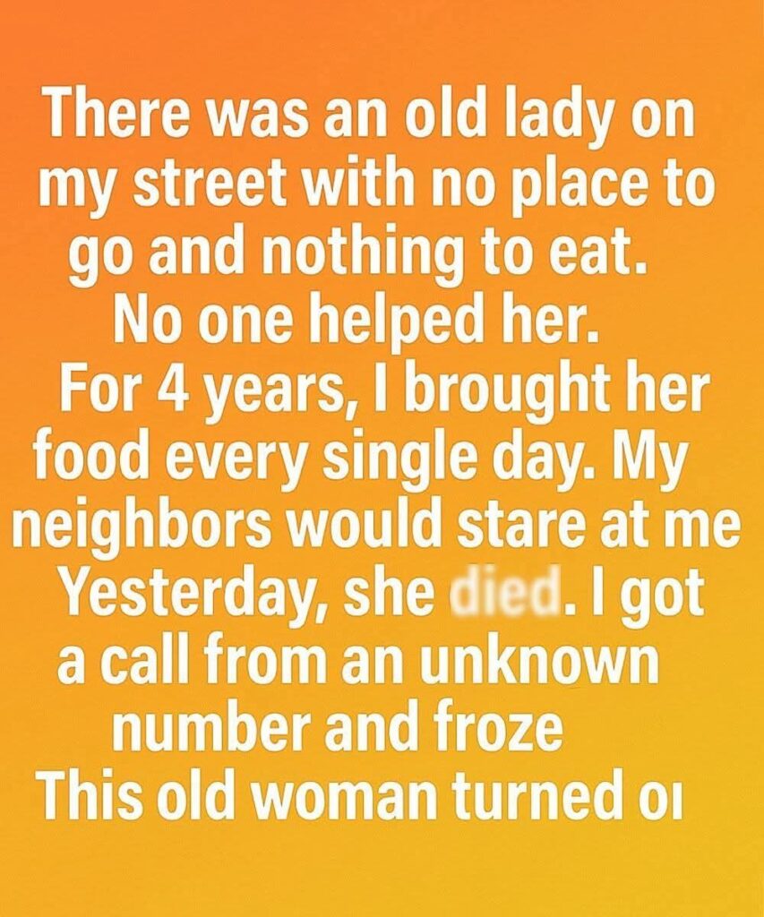 What began as an act of kindness became a ritual that nourished me as much as it did her. Yesterday, she d:ied.